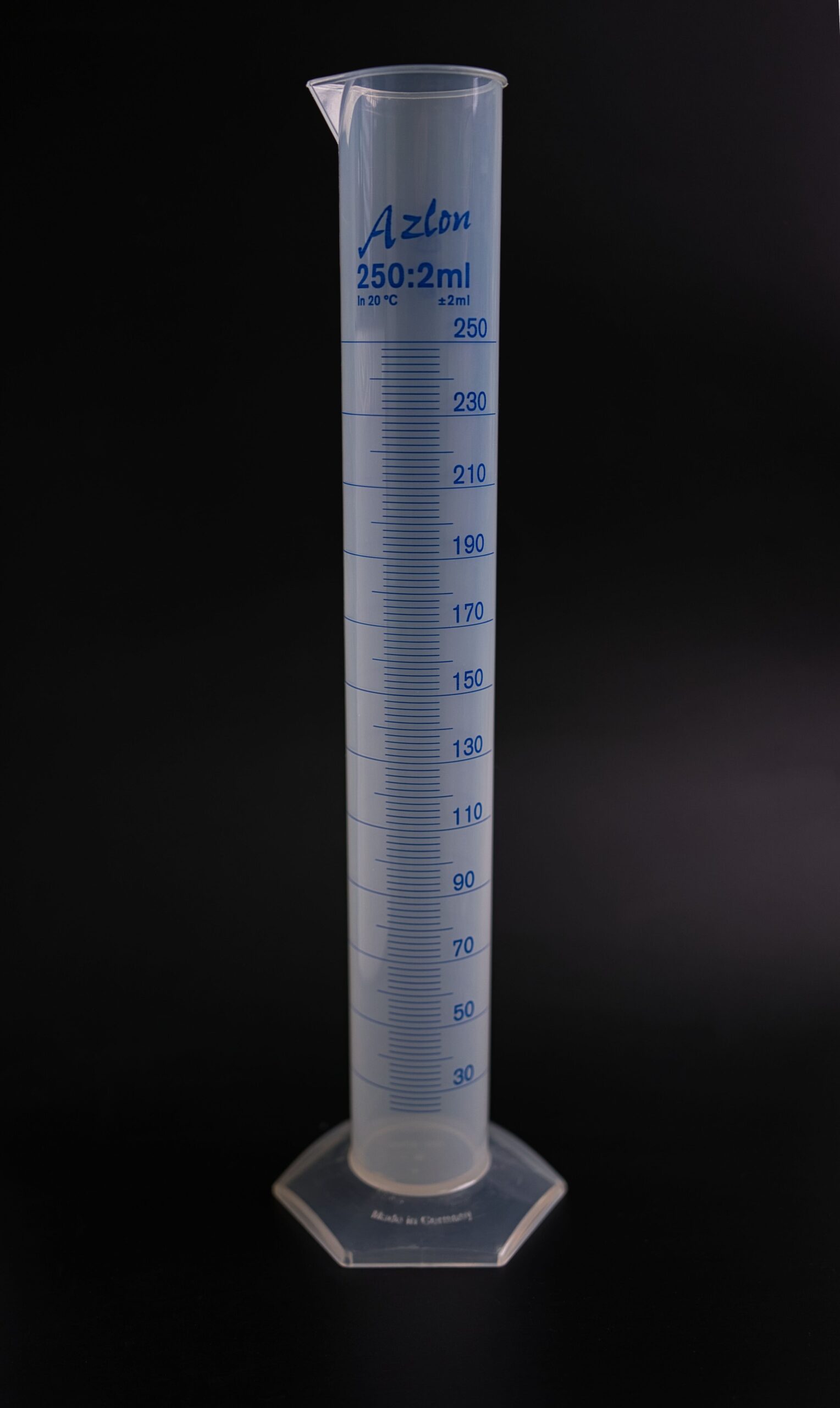 De Plástico (polipropileno) Divisiones marcadas cada 20 ml. Pico para verter con facilidad.